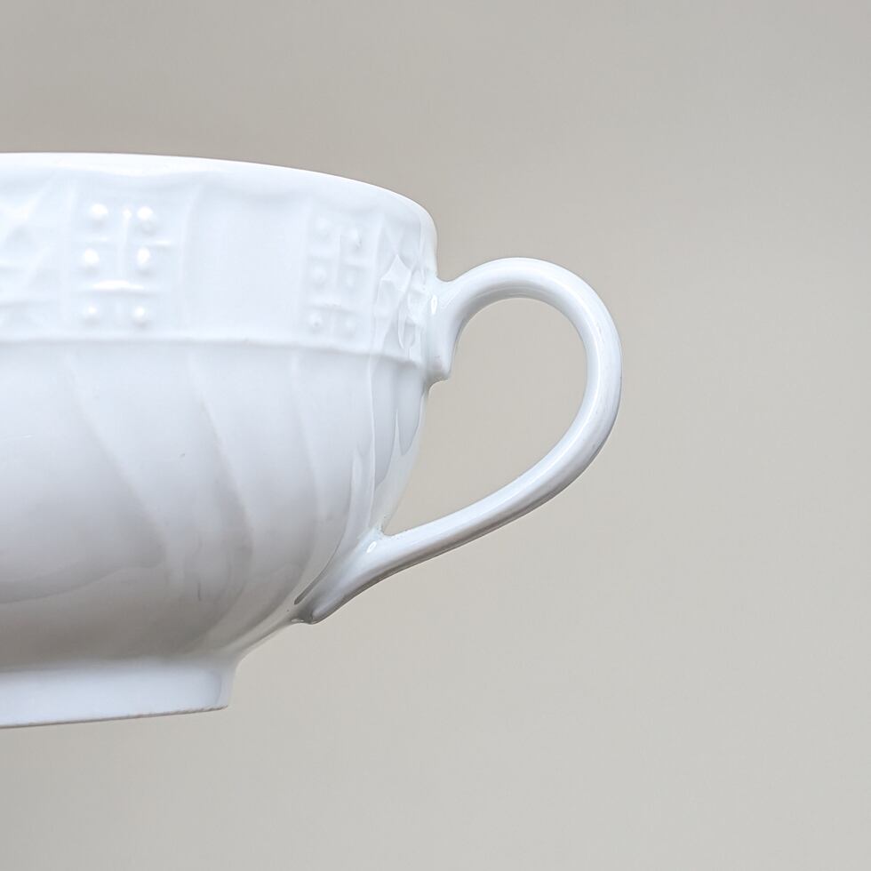 ホワイトポーセリンに繊細なレリーフが浮かび上がる、上品でクラシカルな佇まいが魅力的です。