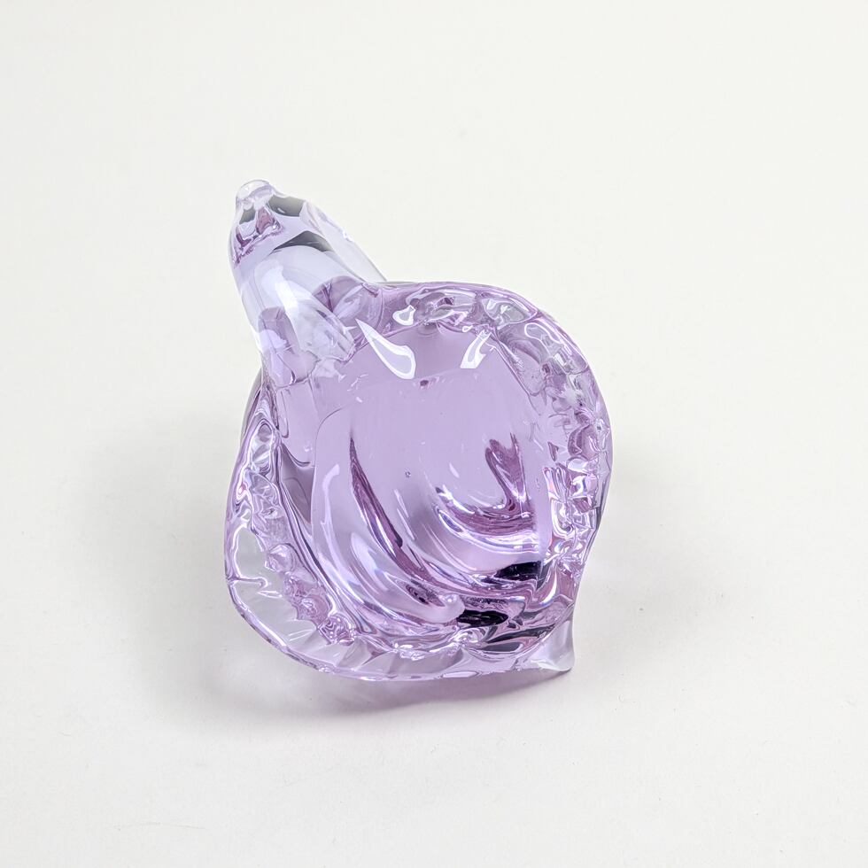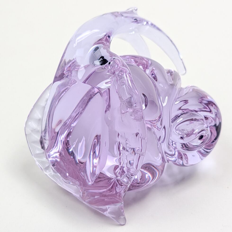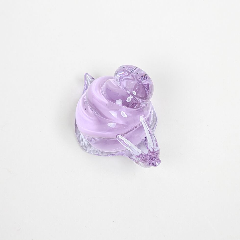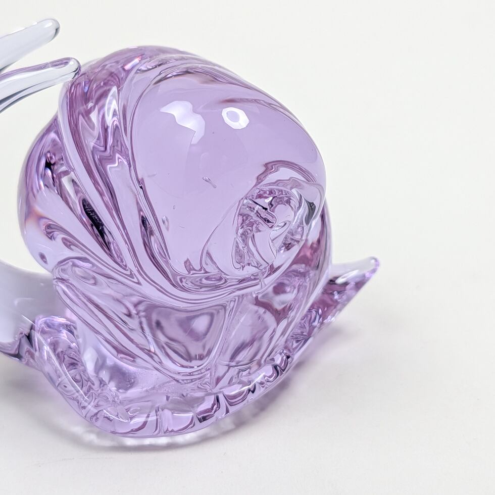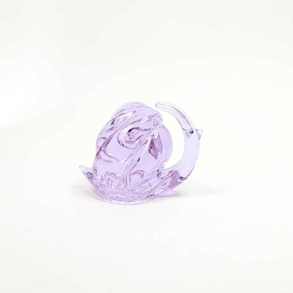 淡い紫色のガラスで表現された、ユーモラスなでんでん虫のオブジェです。