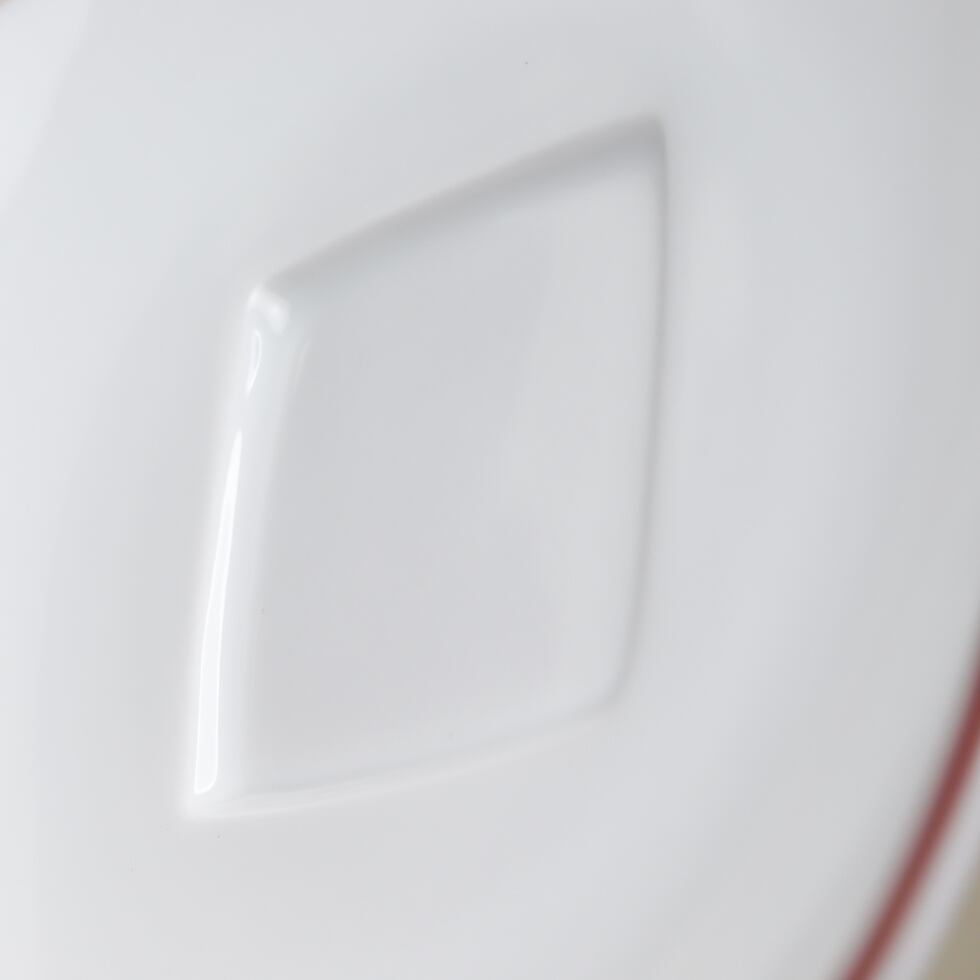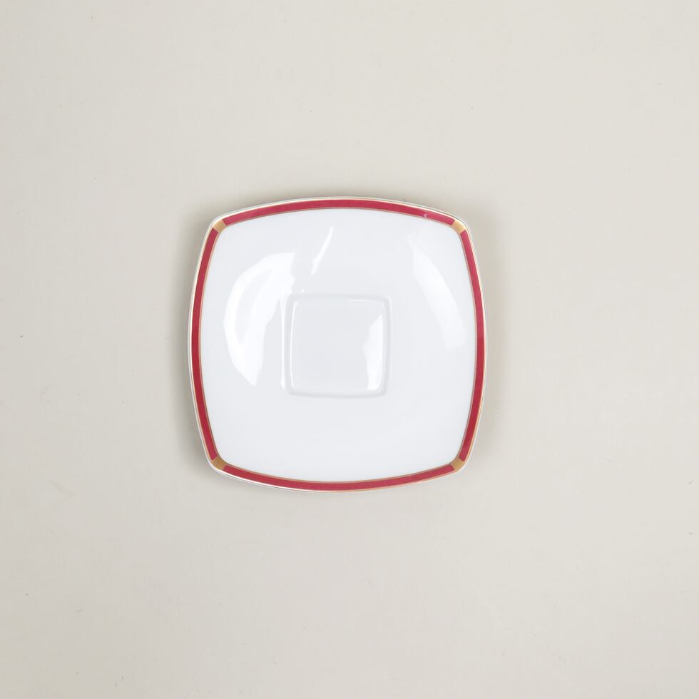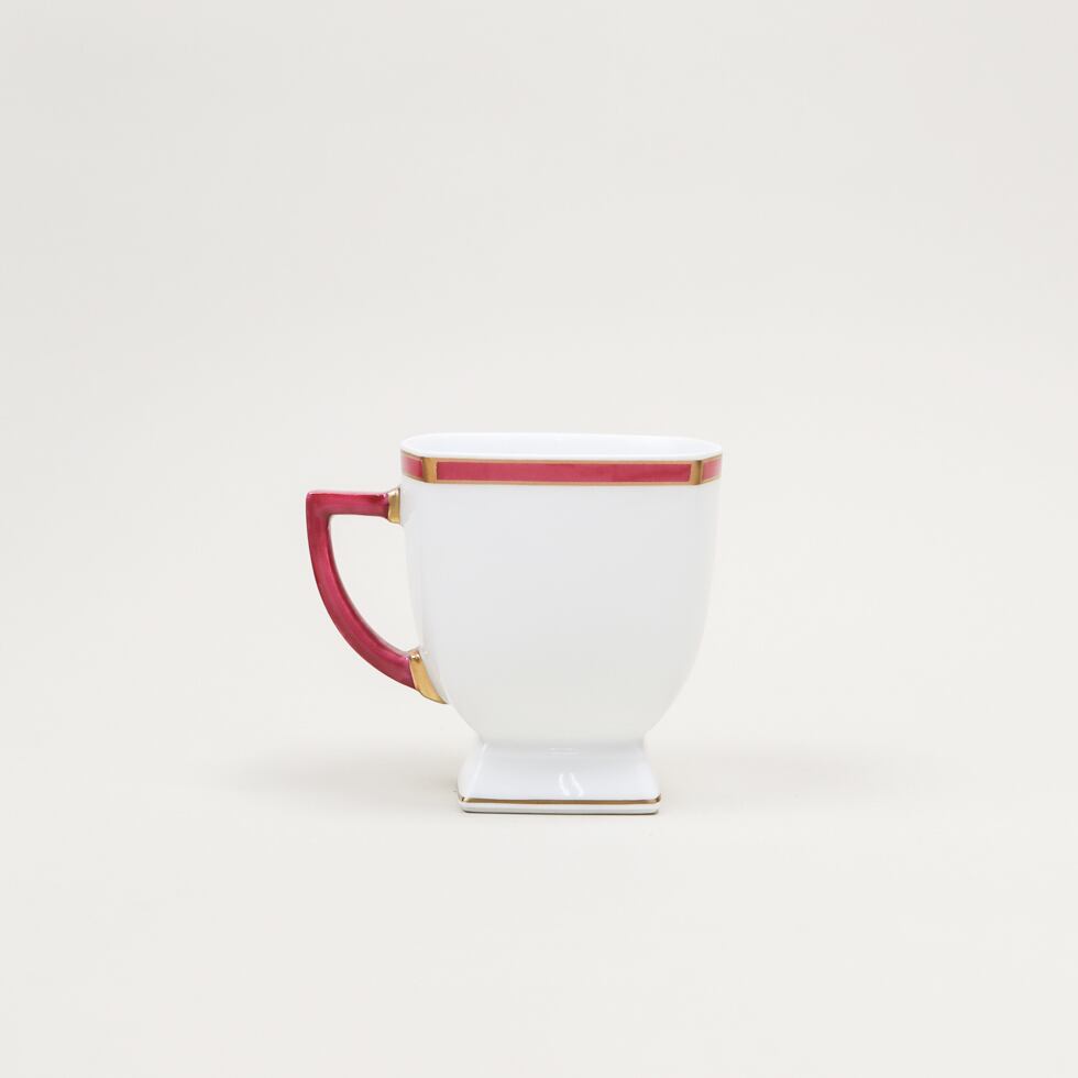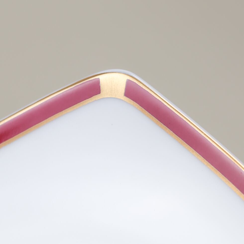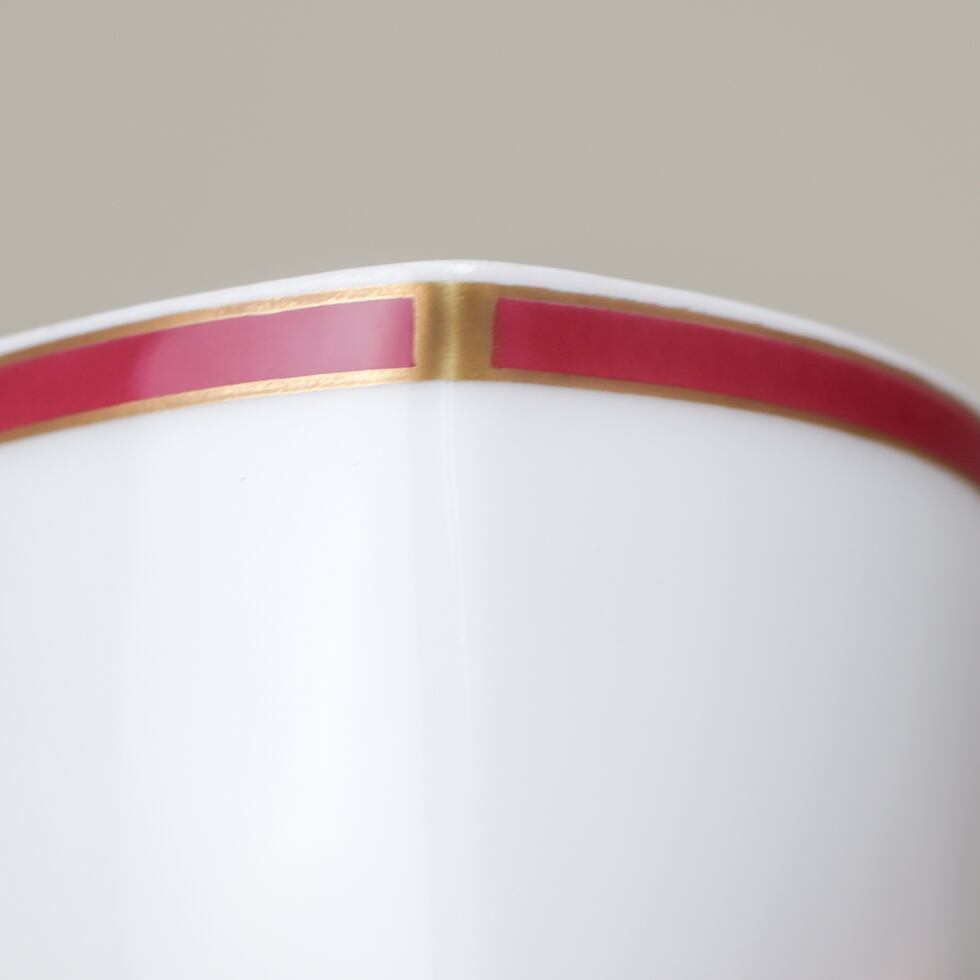 スクエアフォルムのユニークなデザインに、深みのある赤のラインと金彩がアクセントを添え、モダンでありながら気品漂う一品となっています。