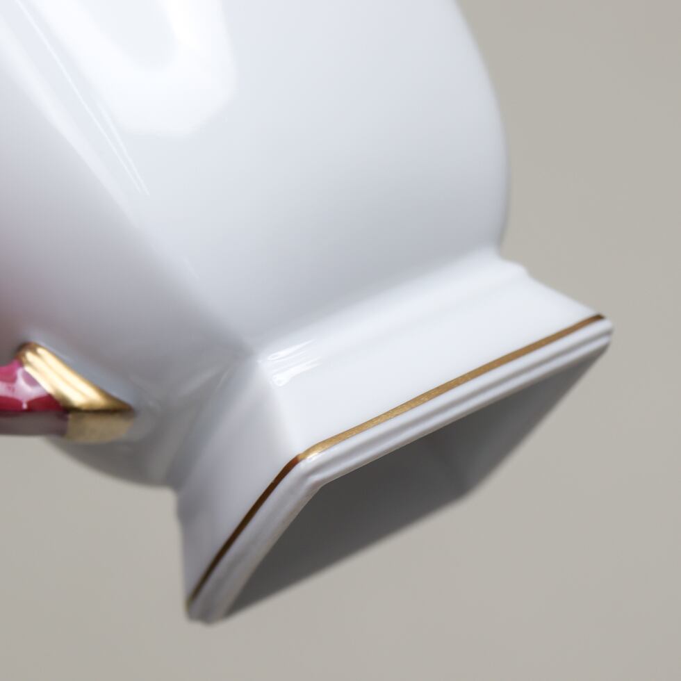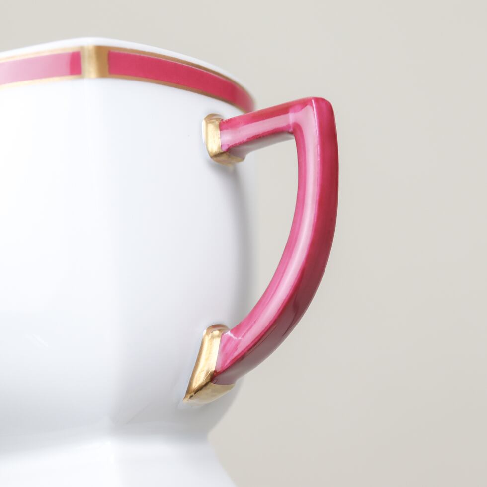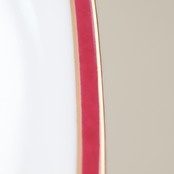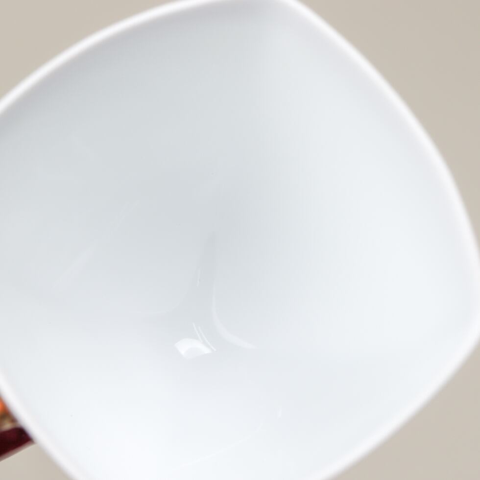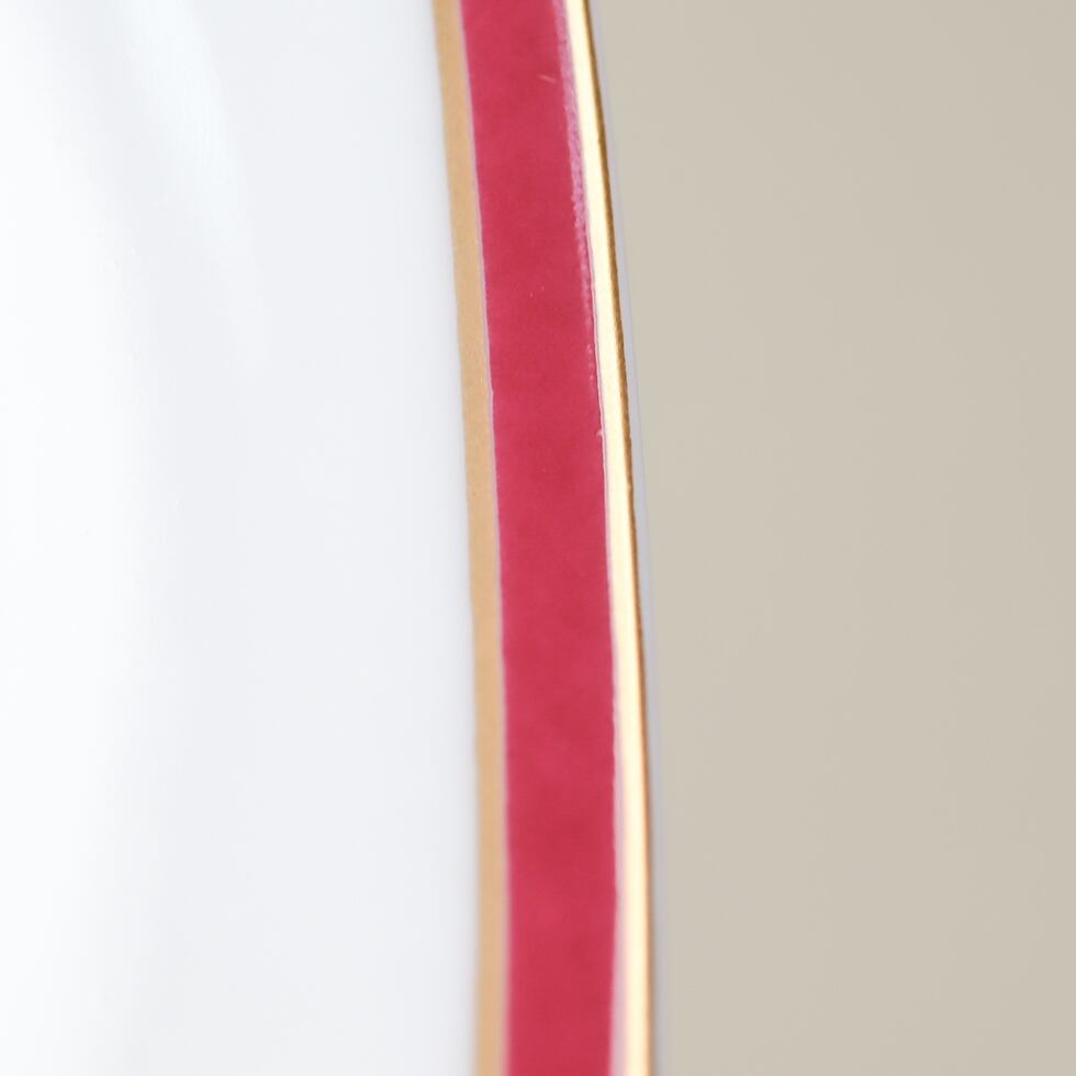 スクエアフォルムのユニークなデザインに、深みのある赤のラインと金彩がアクセントを添え、モダンでありながら気品漂う一品となっています。