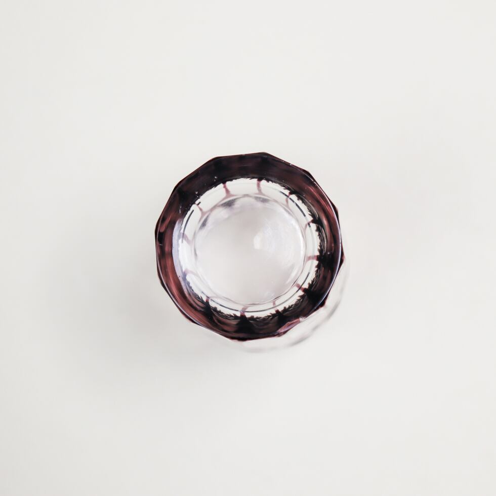 透明感のあるクリスタルガラスに深みのある紫色を重ね、繊細なカットを施すことで、美しい光の屈折と独特の陰影を楽しめる逸品です。