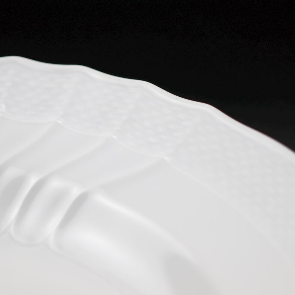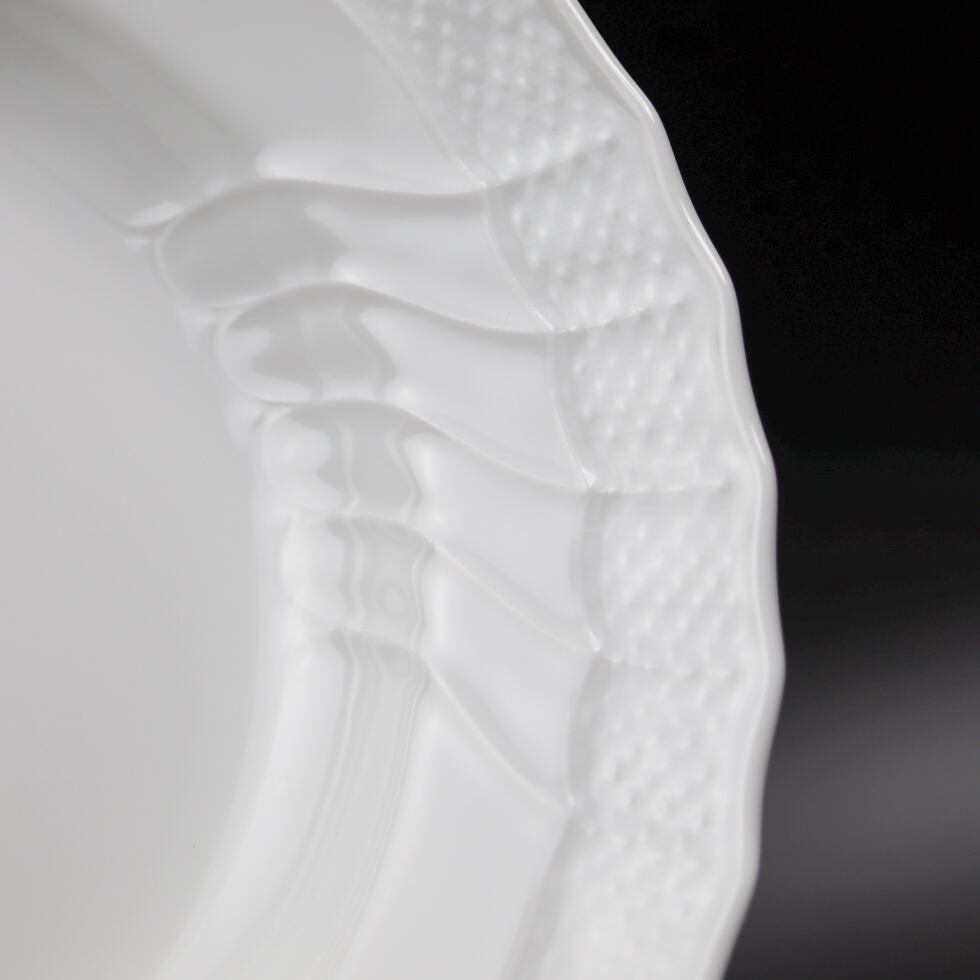 ベッキオならではの繊細なレリーフ模様と、やわらかな光沢を放つ白磁が特徴です。