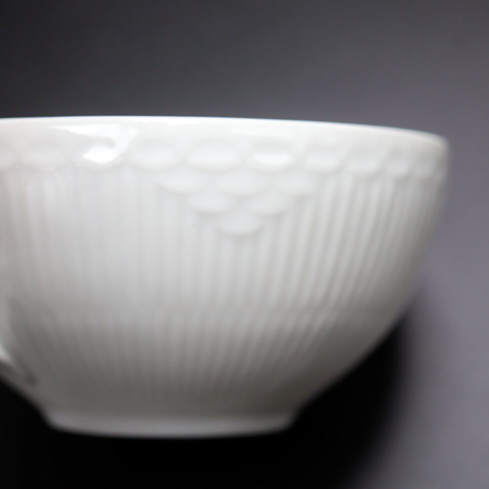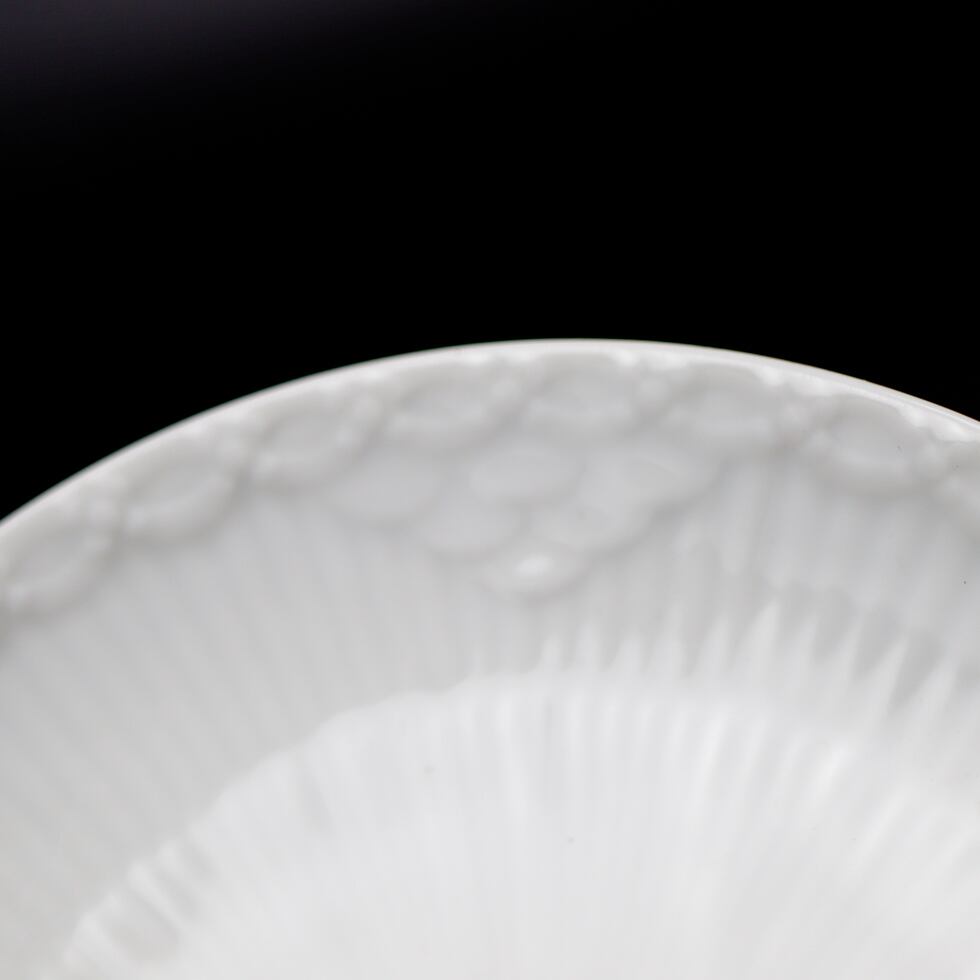 繊細なレリーフ模様とやわらかな白磁の透明感が調和し、ロイヤル コペンハーゲンらしい端正で洗練された雰囲気をまといます。