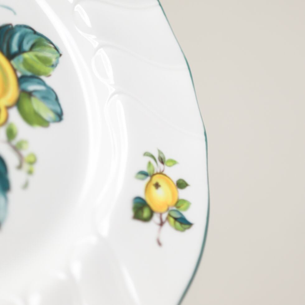 縁取りのグリーンが全体を引き締め、食卓に爽やかさを添えてくれます。