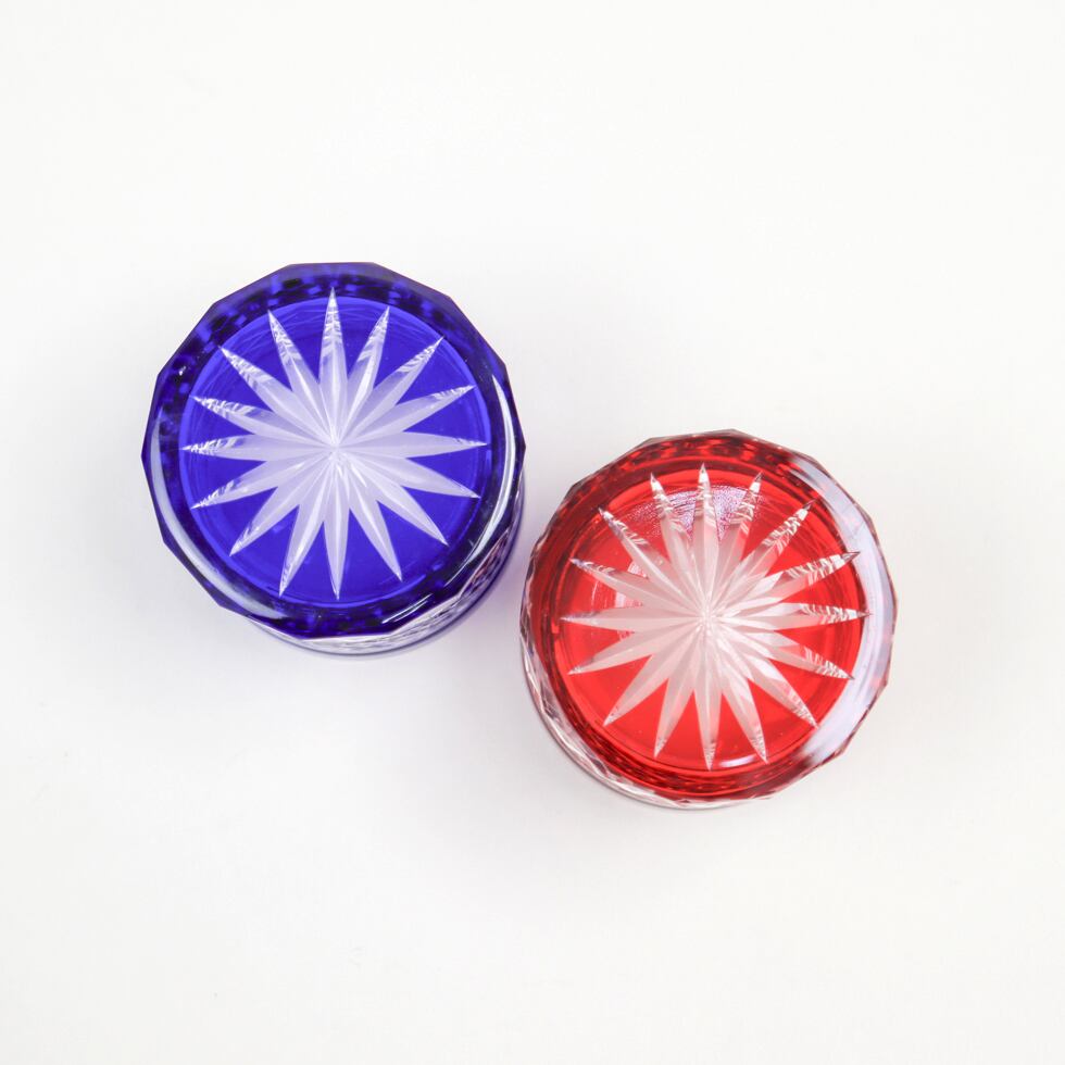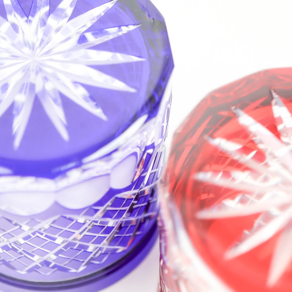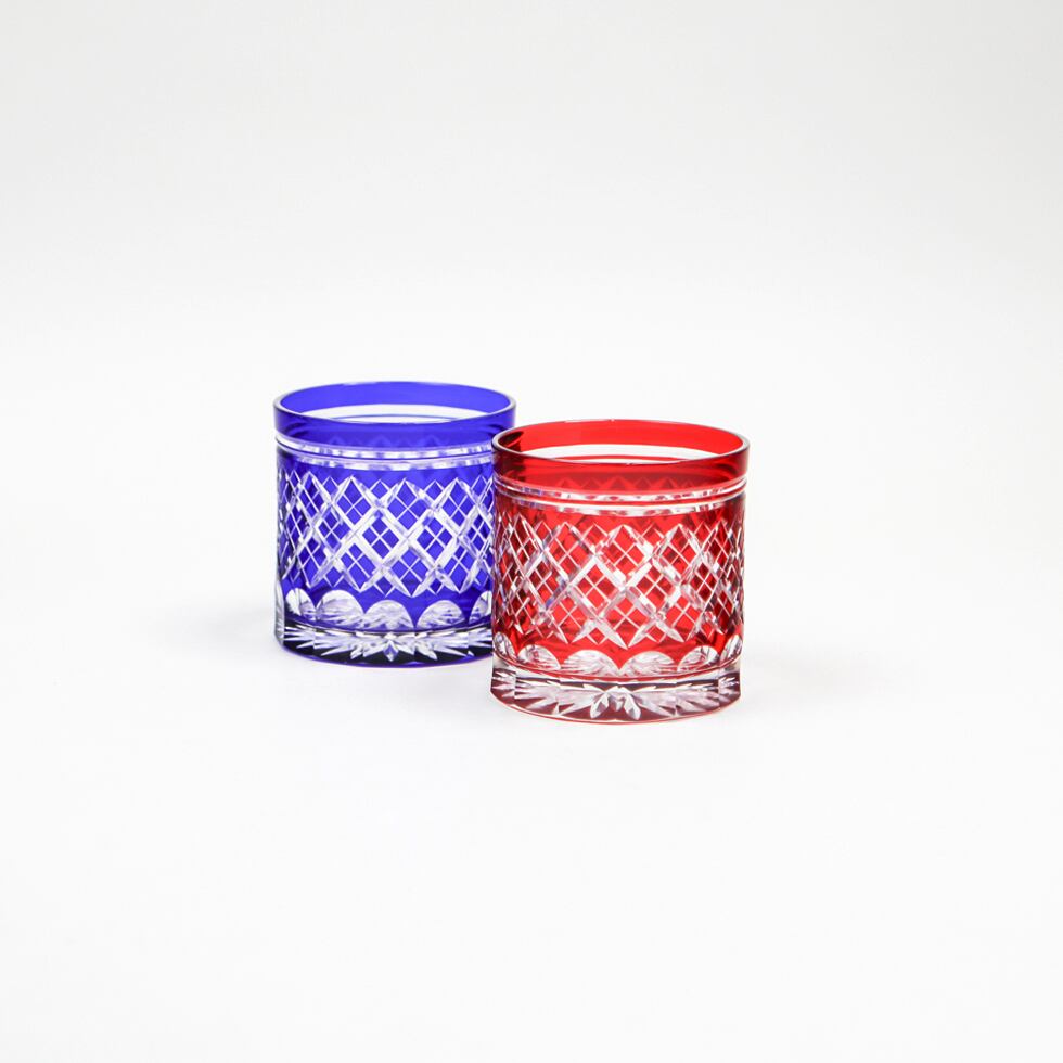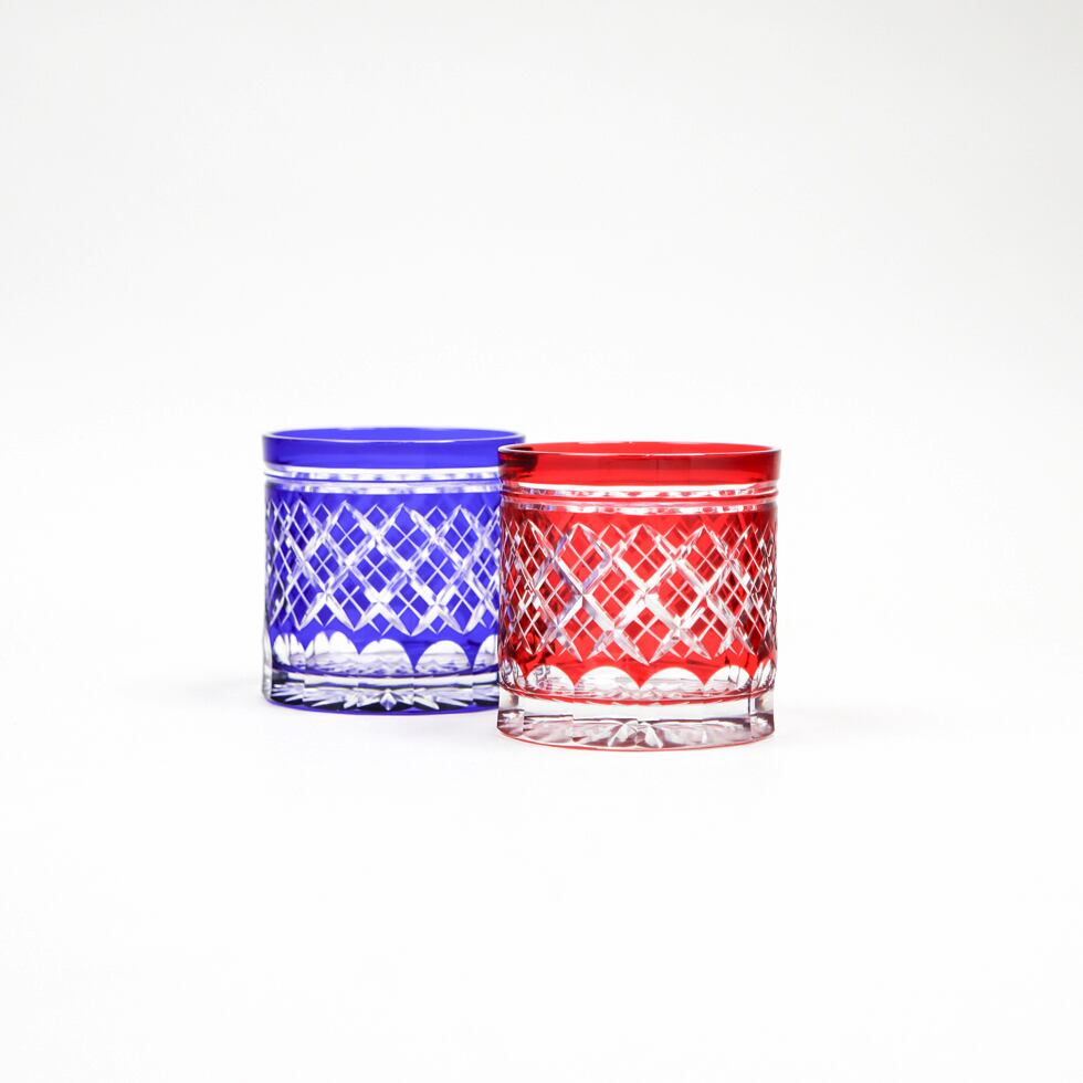 江戸切子 赤 青 オールドファッショングラス 2客|ロックグラス ウイスキーグラス