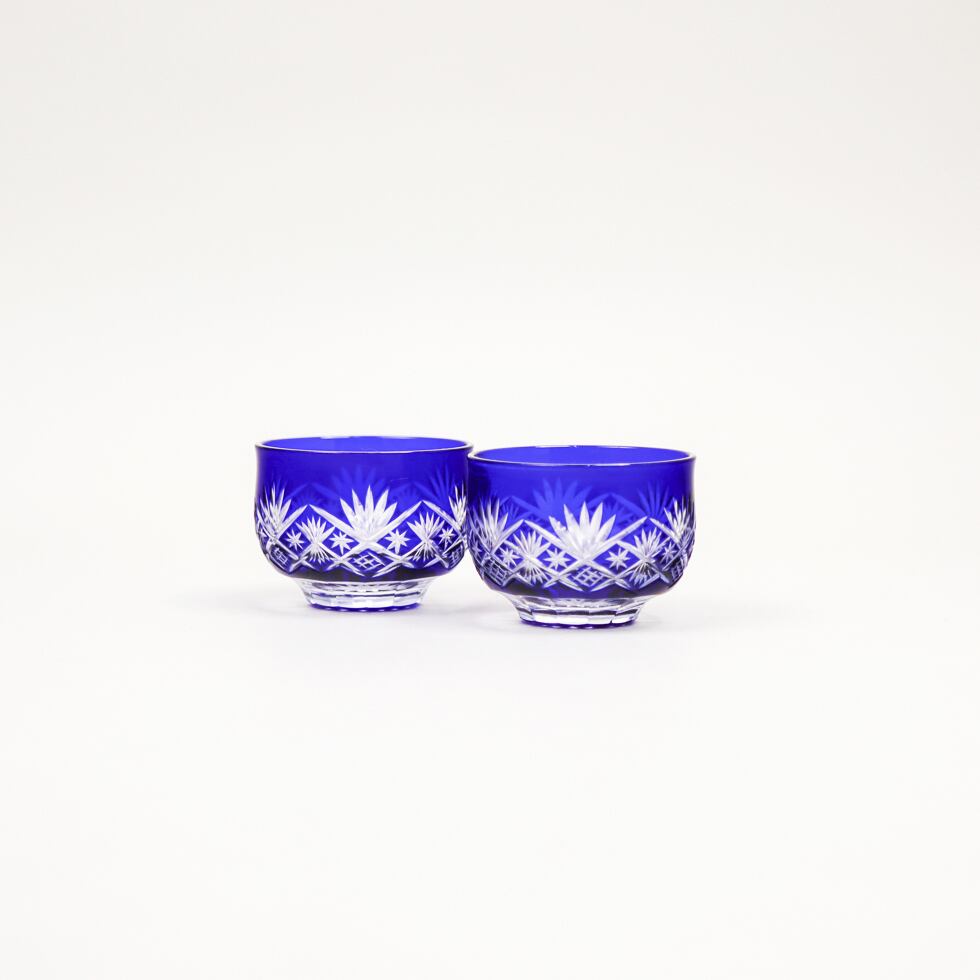 江戸切子 青 ぐい呑み 2客|酒器 珍味入
