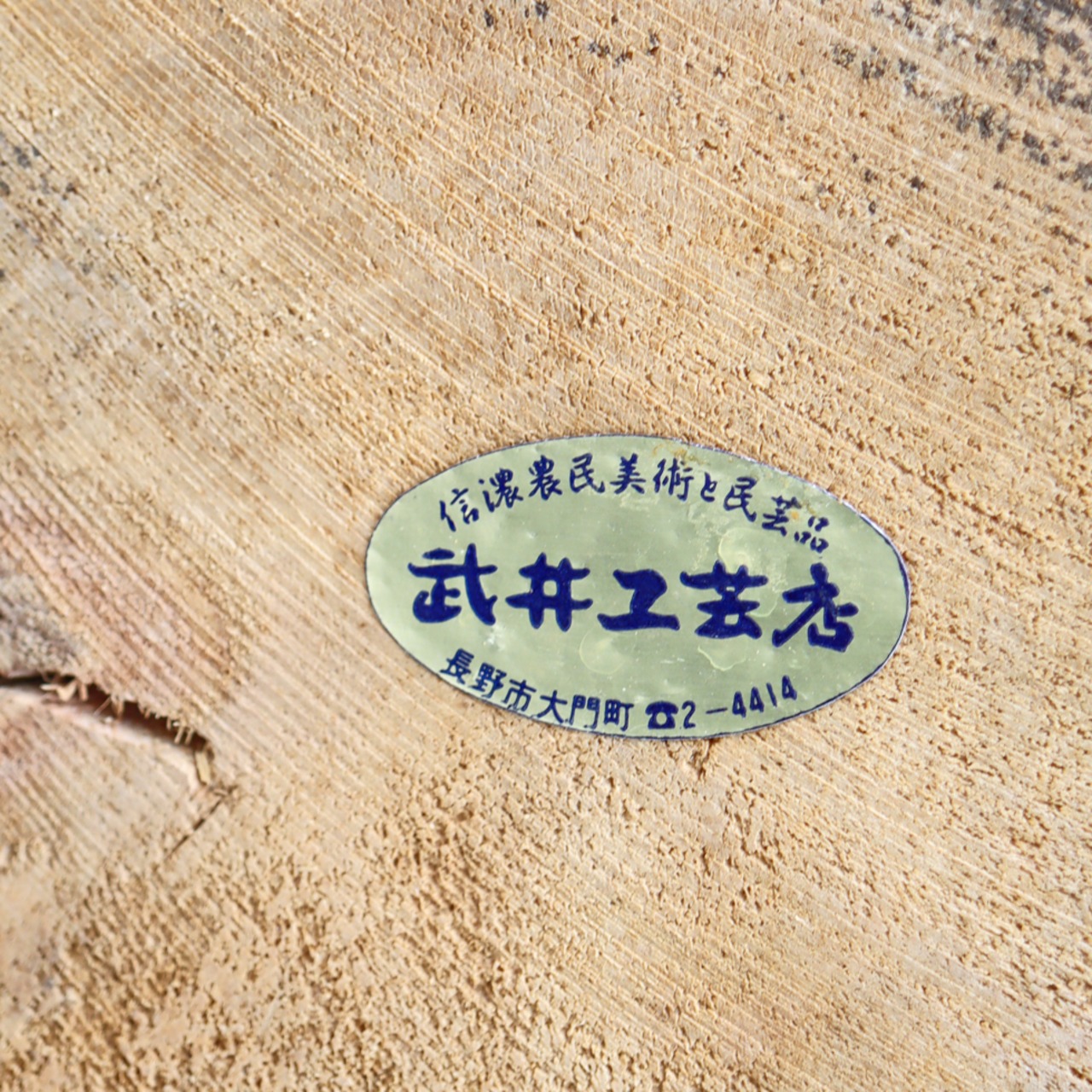 底面には「信濃農民美術と民芸品 武井工芸店」のシールが残っています。 玄関やリビングのインテリアとして、また郷土玩具や民芸品のコレクションとしていかがの色でしょうか。