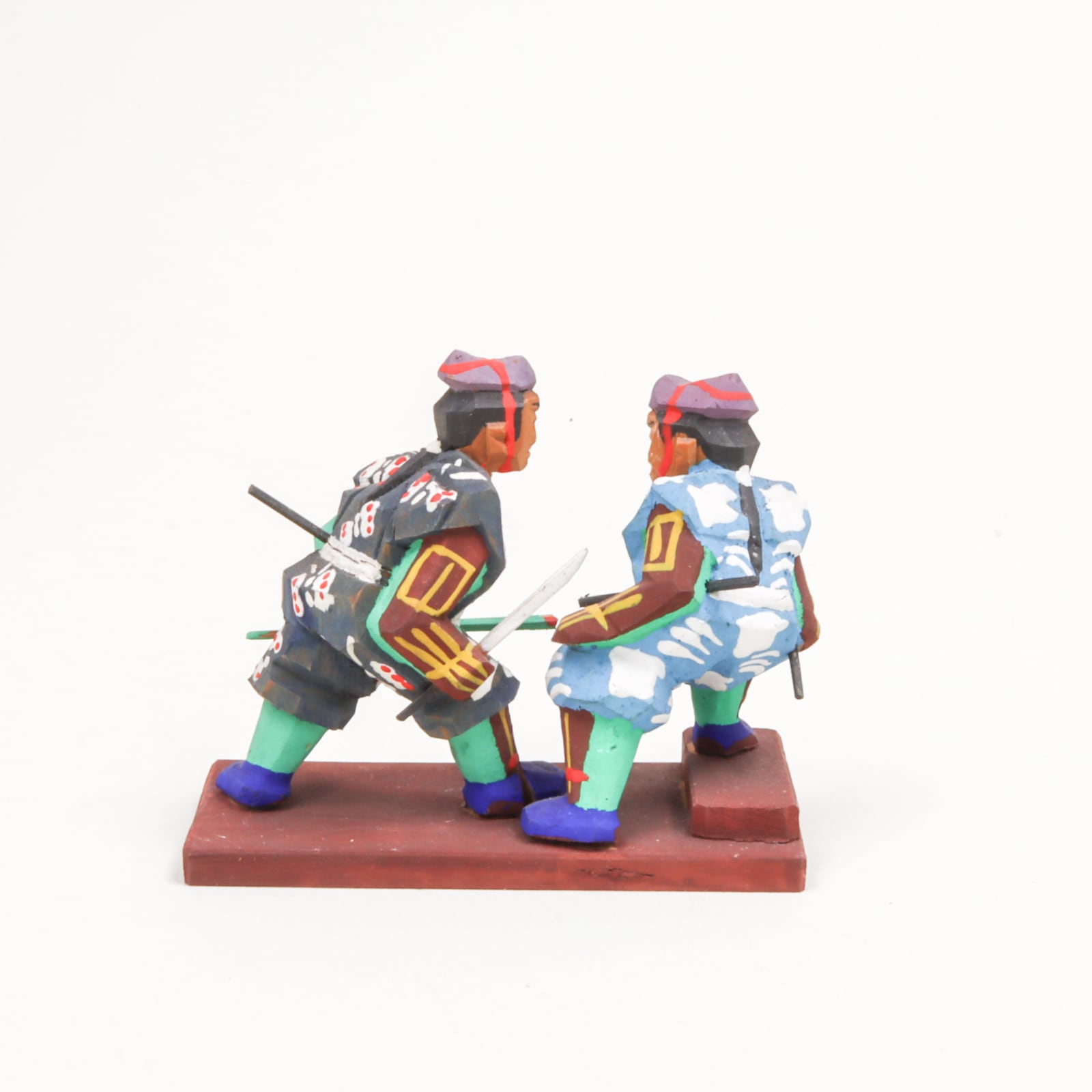 【昭和レトロ/民芸品】小さな決闘 躍動する剣士たちの木彫り人形