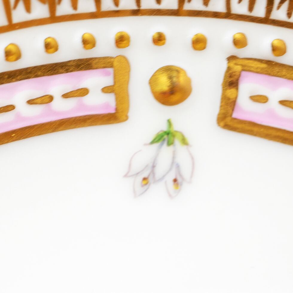 18世紀に編纂された植物図鑑をもとに、熟練の絵付師が一点一点手描きで仕上げるこのシリーズは、全く同じものが二つと存在しません。本品には、可憐な高山植物「Sedum anglicum(イングリッシュ・ストーンクロップ)」が描かれています。